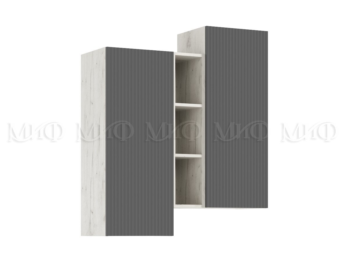 - Шкаф подвесной комбинированный Оскар Графит Софт, Дуб Крафт Белый