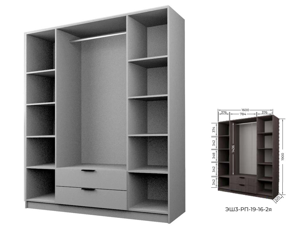 Шкаф с 2 ящиками Экон ЭШ3-РП-19-16-2я четыре зеркала