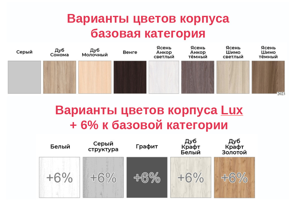 Дополнительно шкафы могут комплектоваться антресолями высотой 400 мм, консолями и зеркалами.