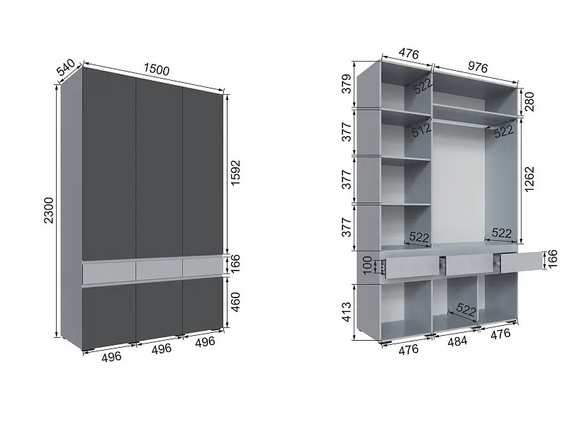 - Шкаф трехдверный Мерида серый камень/графит серый
