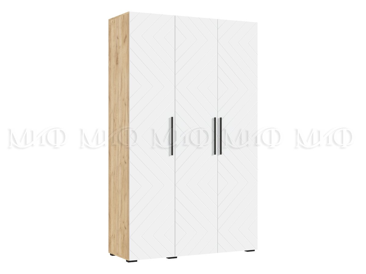 - Шкаф трехстворчатый (1350) Флэш Браш Вайт, Дуб Крафт