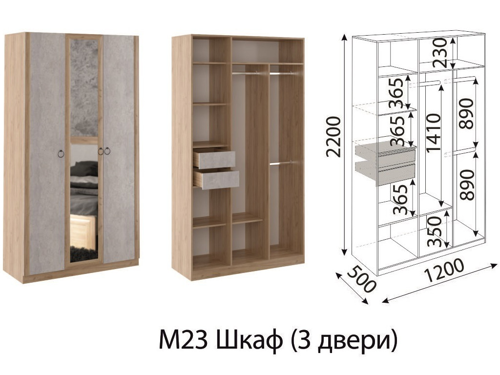 - Шкаф трехстворчатый Глэдис М23 Дуб золото