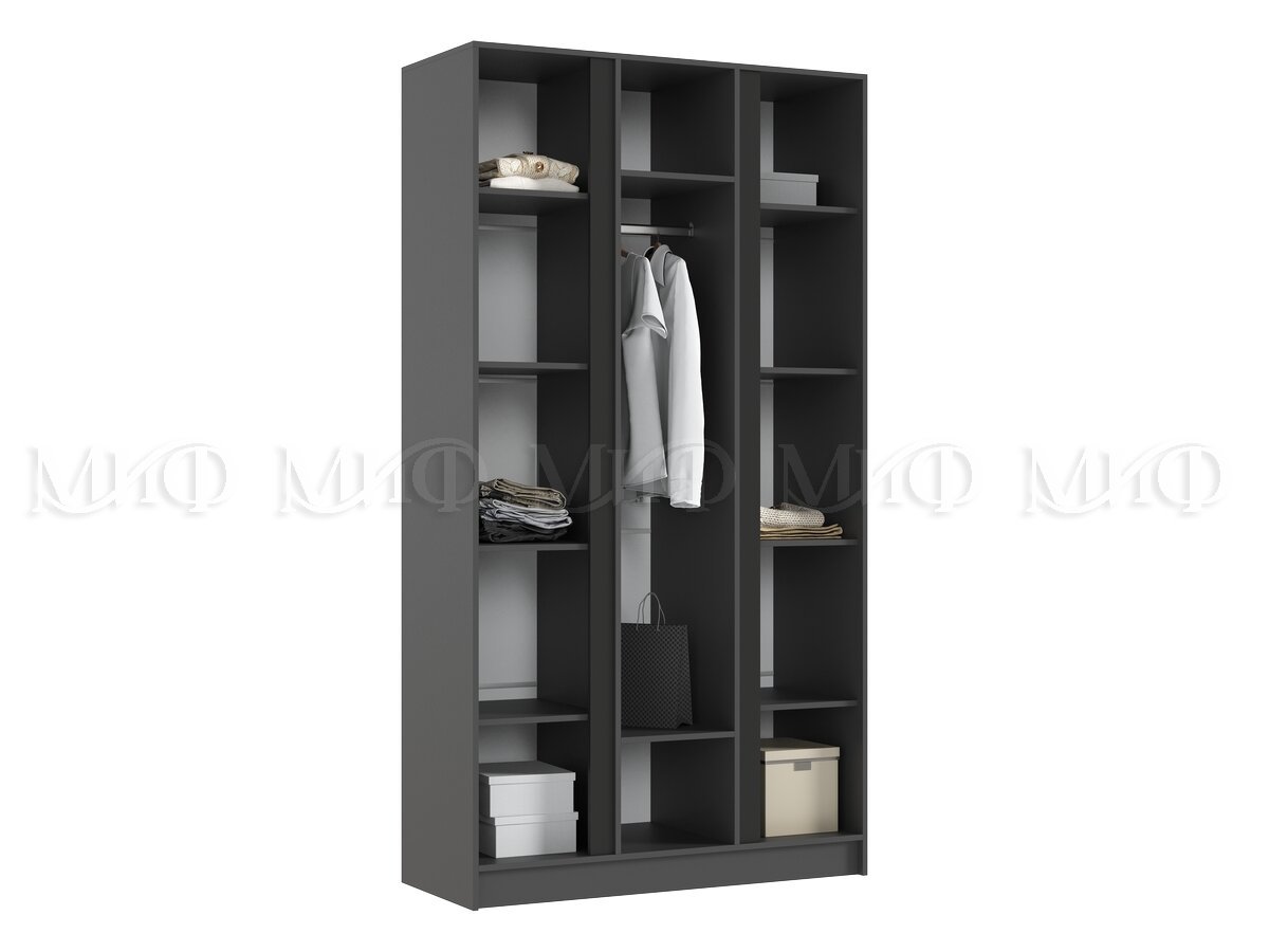 - Шкаф трехстворчатый Келвин (1200) Графит-вставка черная