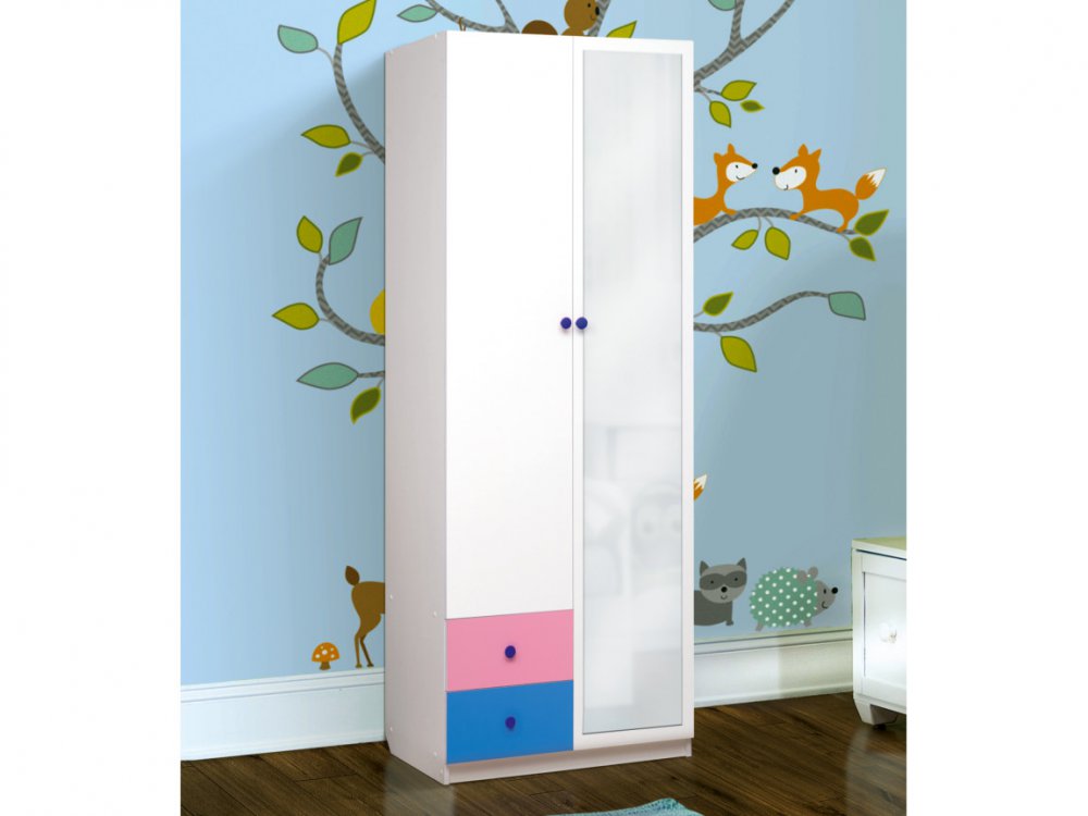 - Шкаф 2-х дверный с ящиками и зеркалом Радуга