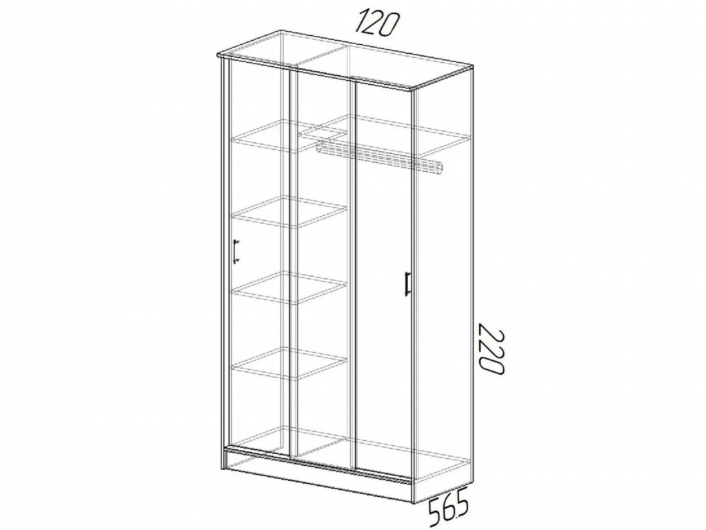 Размер: 1200(Ш) Х 2200(В) Х 565(Г) мм