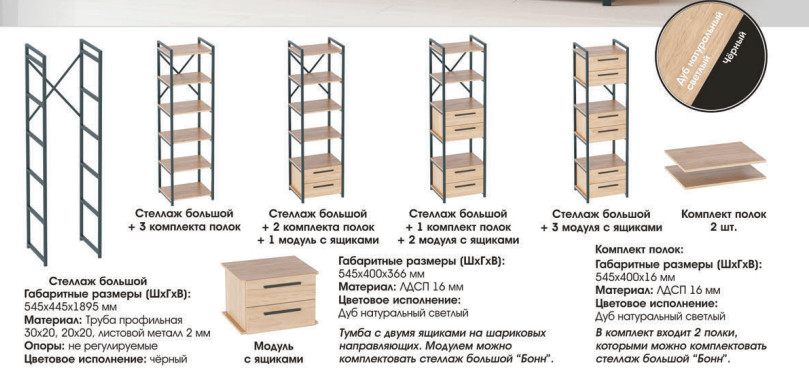 - Стеллаж большой + 1 комплект полок + 2 модуля с ящиками